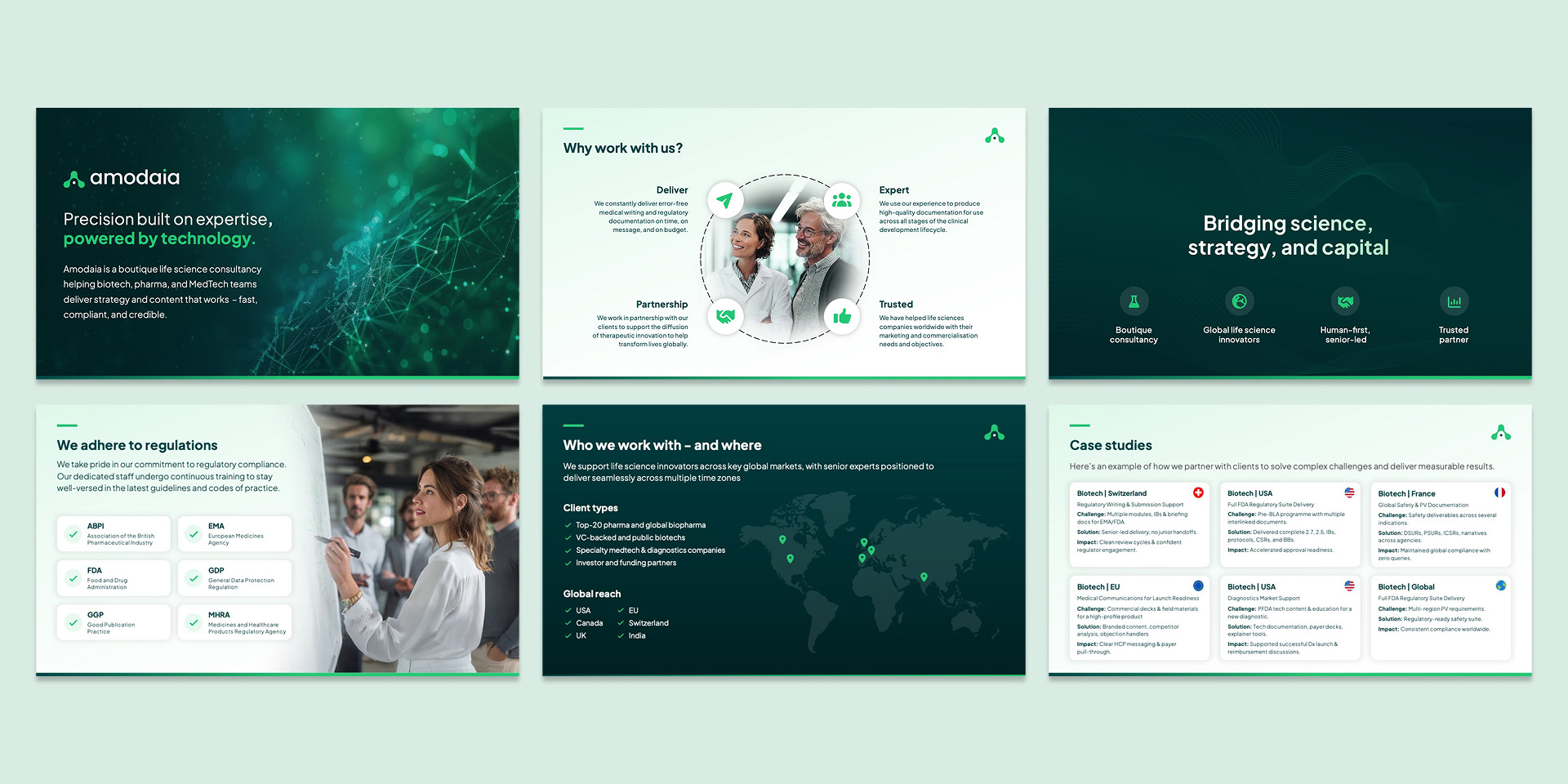 Pitch decks, client presentations, templates.